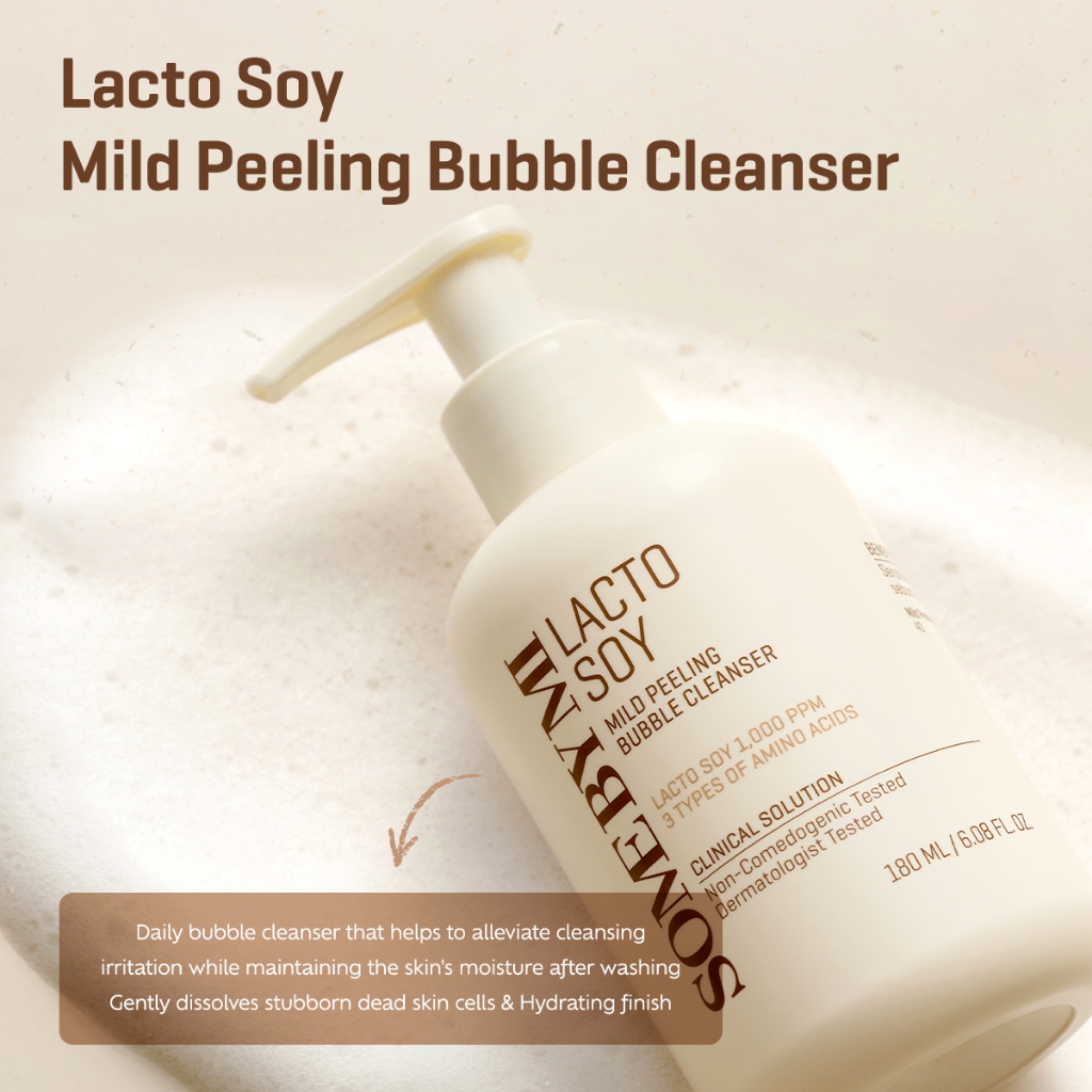Το Lacto Soy Mild Peeling Bubble Cleanser (180ml) από τη SOME BY MI είναι ένα καθαριστικό σε μορφή gel-to-foam που δημιουργεί αφρό κατά την εφαρμογή, βοηθώντας στη βαθιά καθαριότητα της επιδερμίδας και την απομάκρυνση των νεκρών κυττάρων. Είναι κατάλληλο για όλους τους τύπους δέρματος, συμπεριλαμβανομένου του ευαίσθητου.