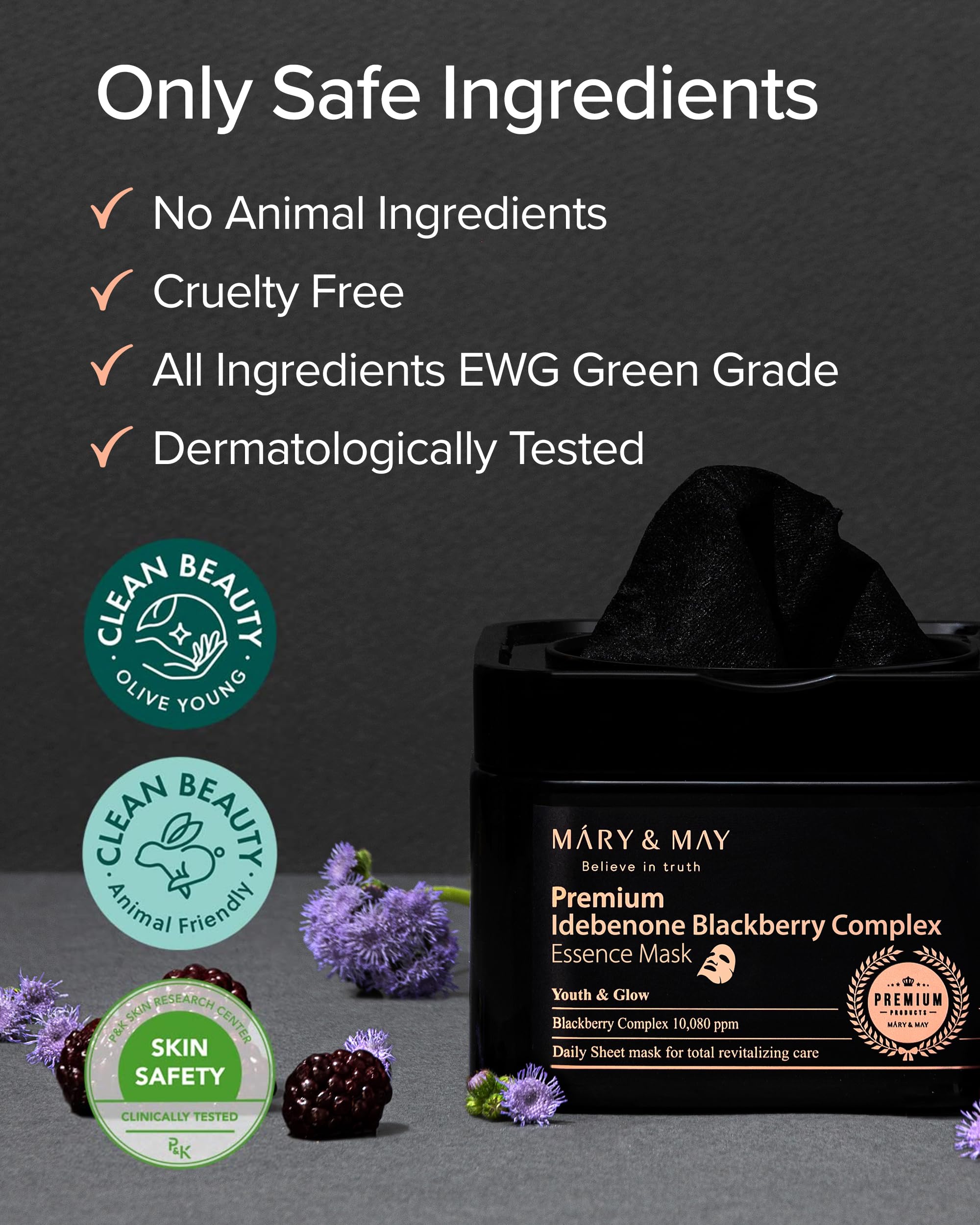 Οι Premium Idebenone Blackberry Complex Essence Mask 20pcs είναι κατάλληλες για όλους τους τύπους επιδερμίδας, ακόμη και της ευαίσθητης. Επίσης, το προϊόν έχει περάσει δερματολογικές δοκιμές και είναι απαλλαγμένο από 18 επιβλαβή συστατικά, όπως parabens και συνθετικές βαφές.